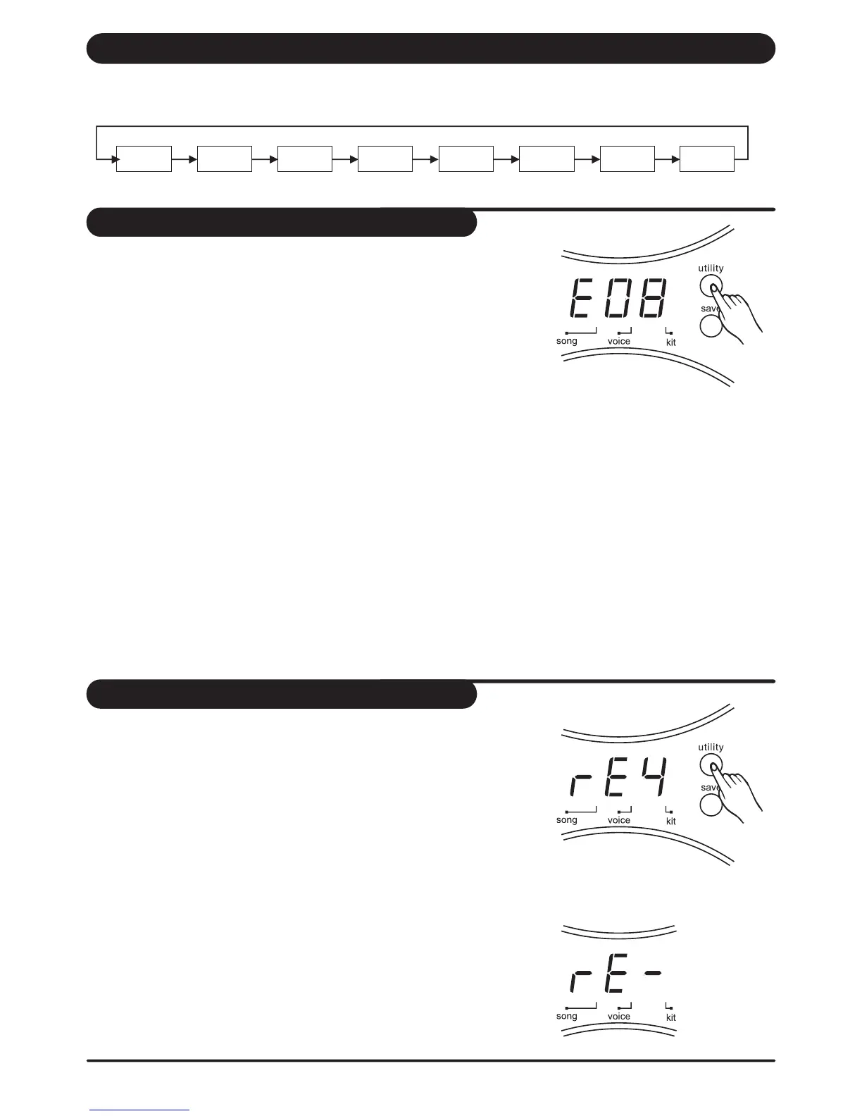1. Press the [ utility ] button until display shows: "rEX",