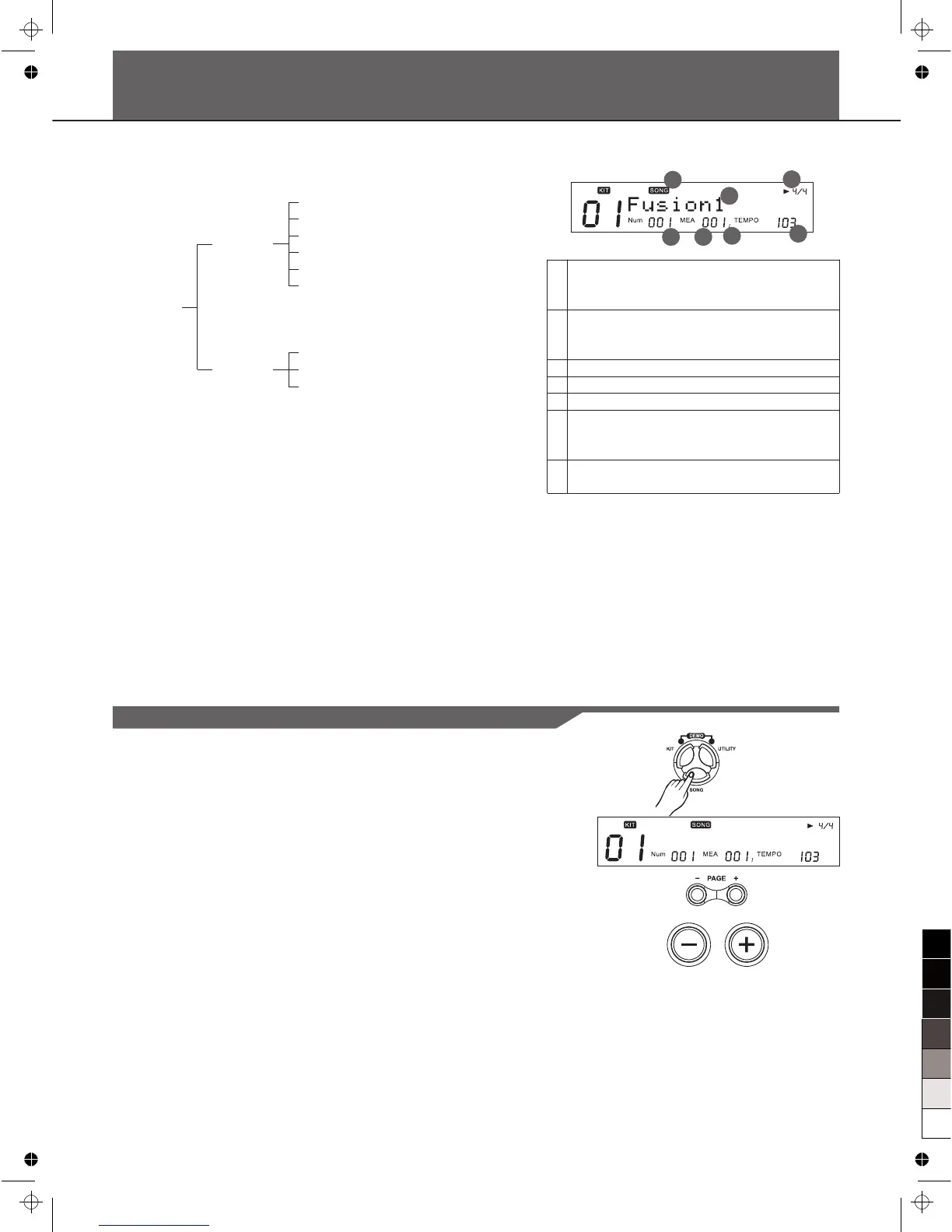 2. Press [PAGE+] / [PAGE-] to select the song category.