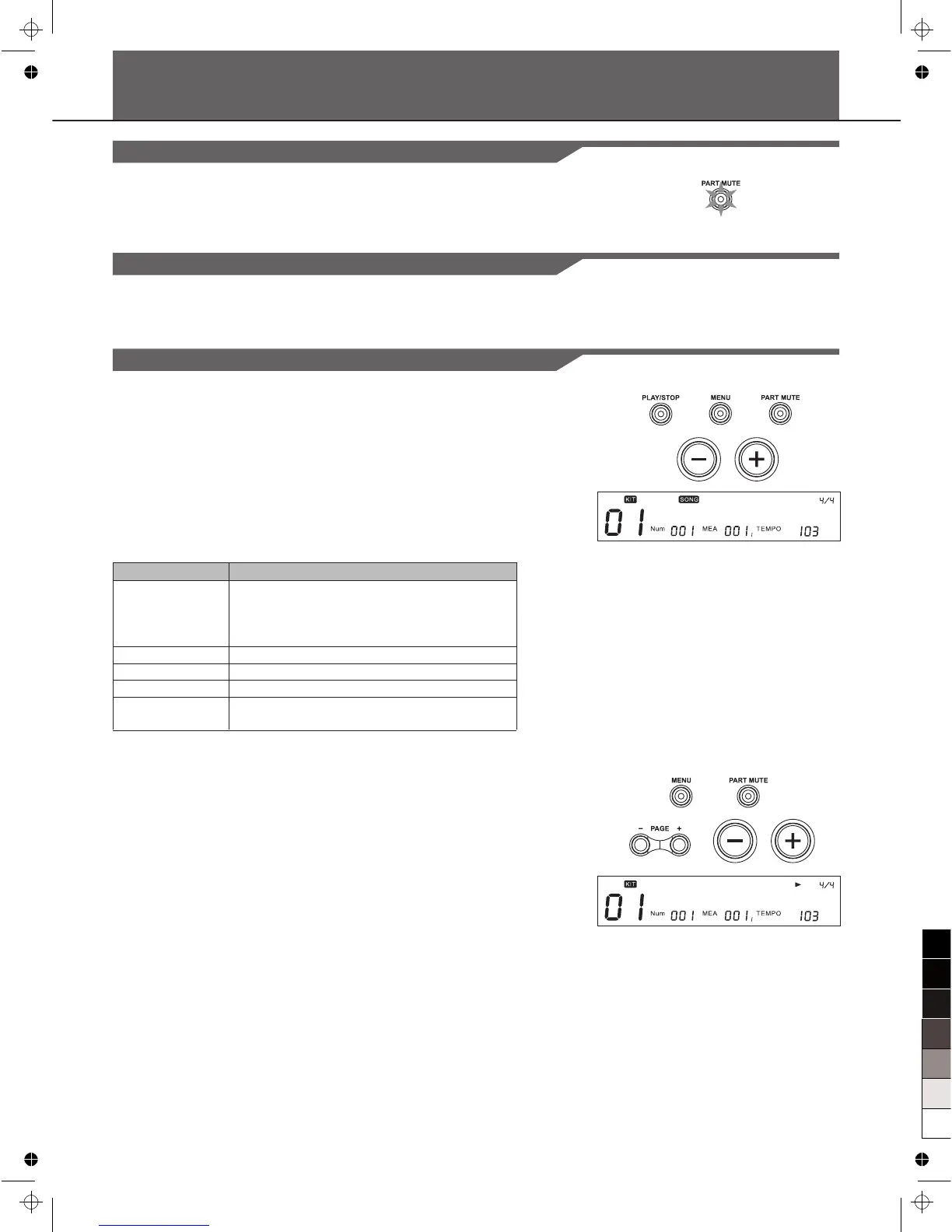 [MENU] button, then press [PART MUTE] button to enter the