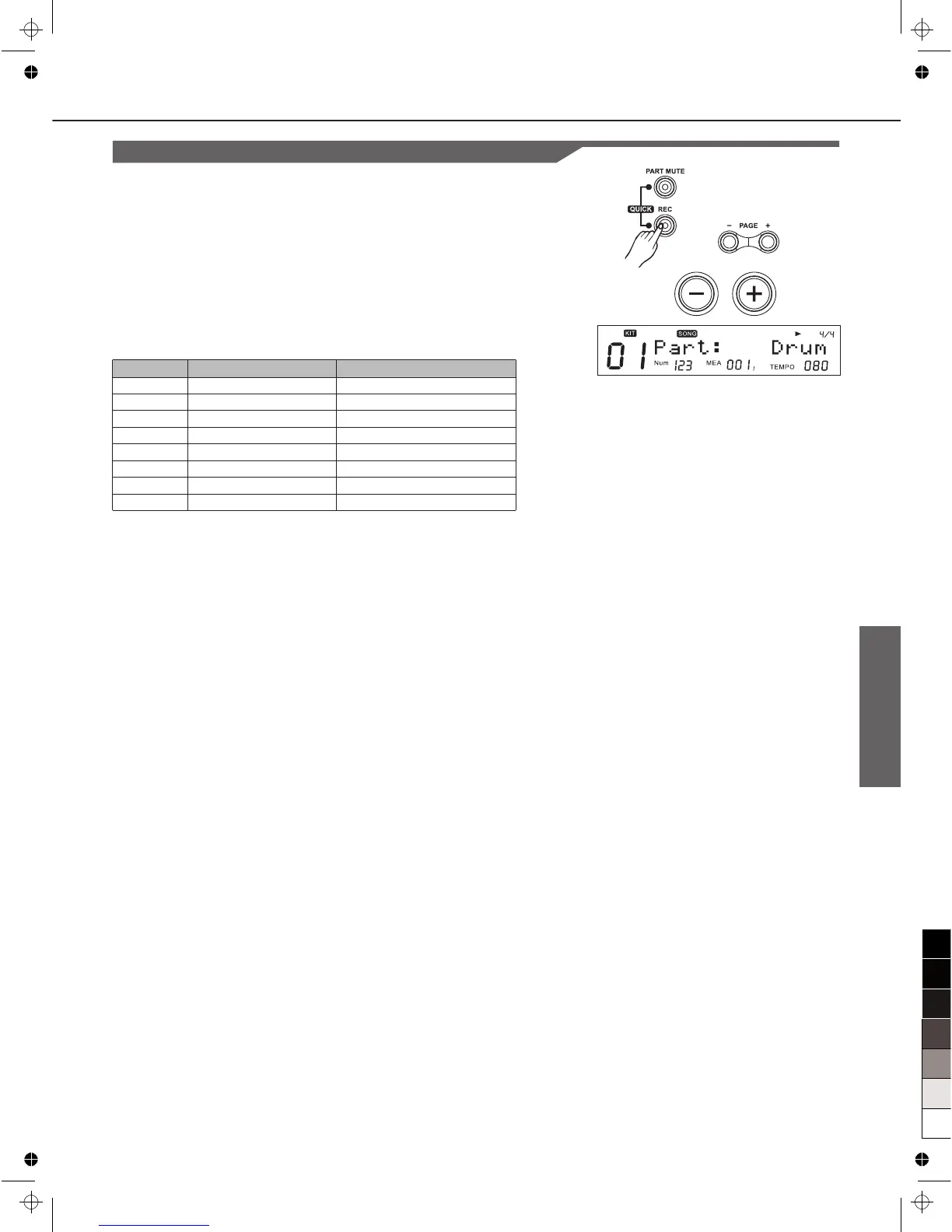 3. Press [+]/[-] or use the DIAL to choose the record part and