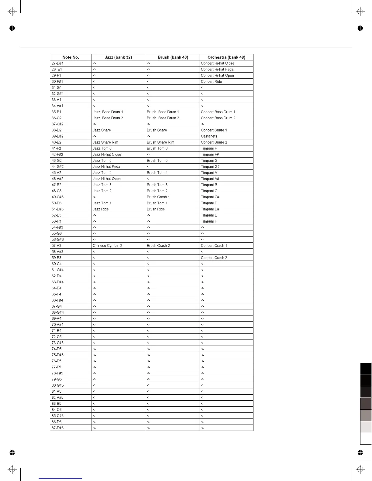Medeli DD508DX - GM Drum Kit List