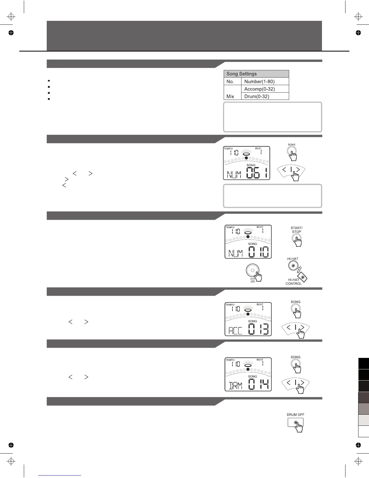 song number and adjust the volume of the song’s