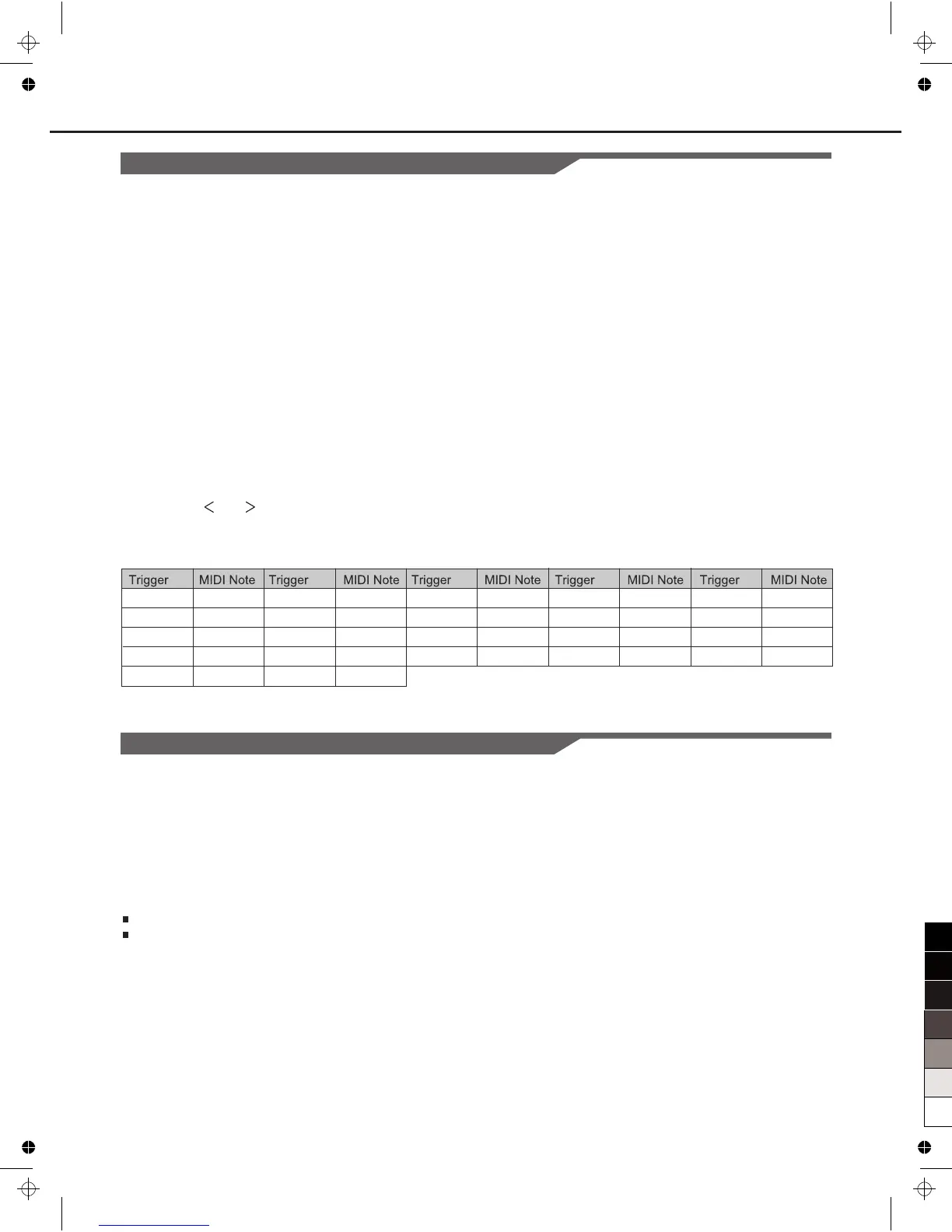 3. Press the [ ] or [ ] button, change the MIDI Note Number for each pad. Hit the pad you wish to set or press the