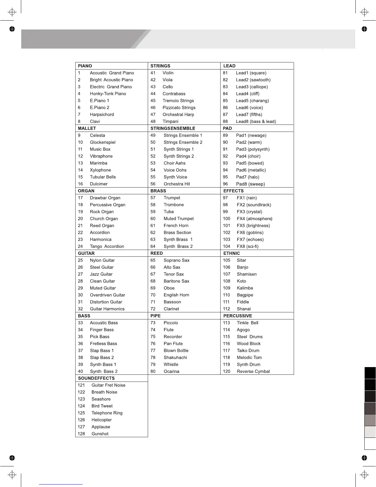 GM Backing Instrument List
