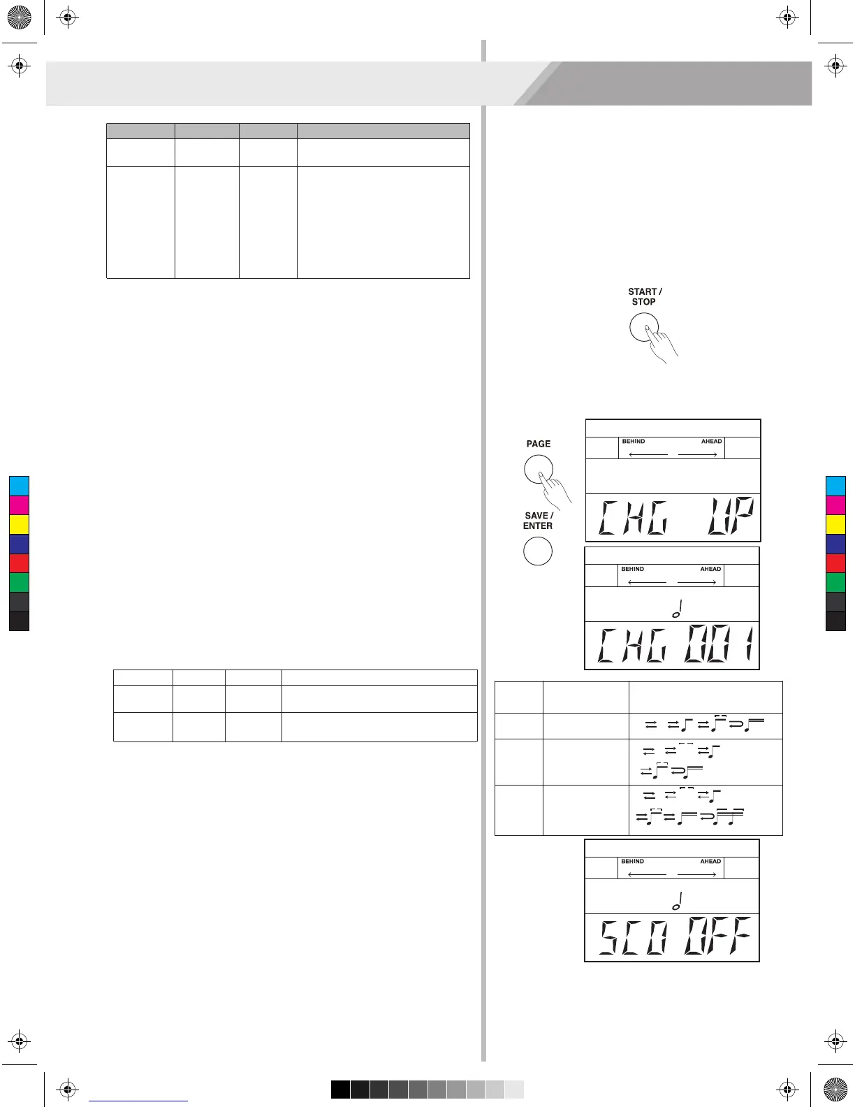 4. Use the [PAGE] button to switch to score editing, press the [+]/ [-]