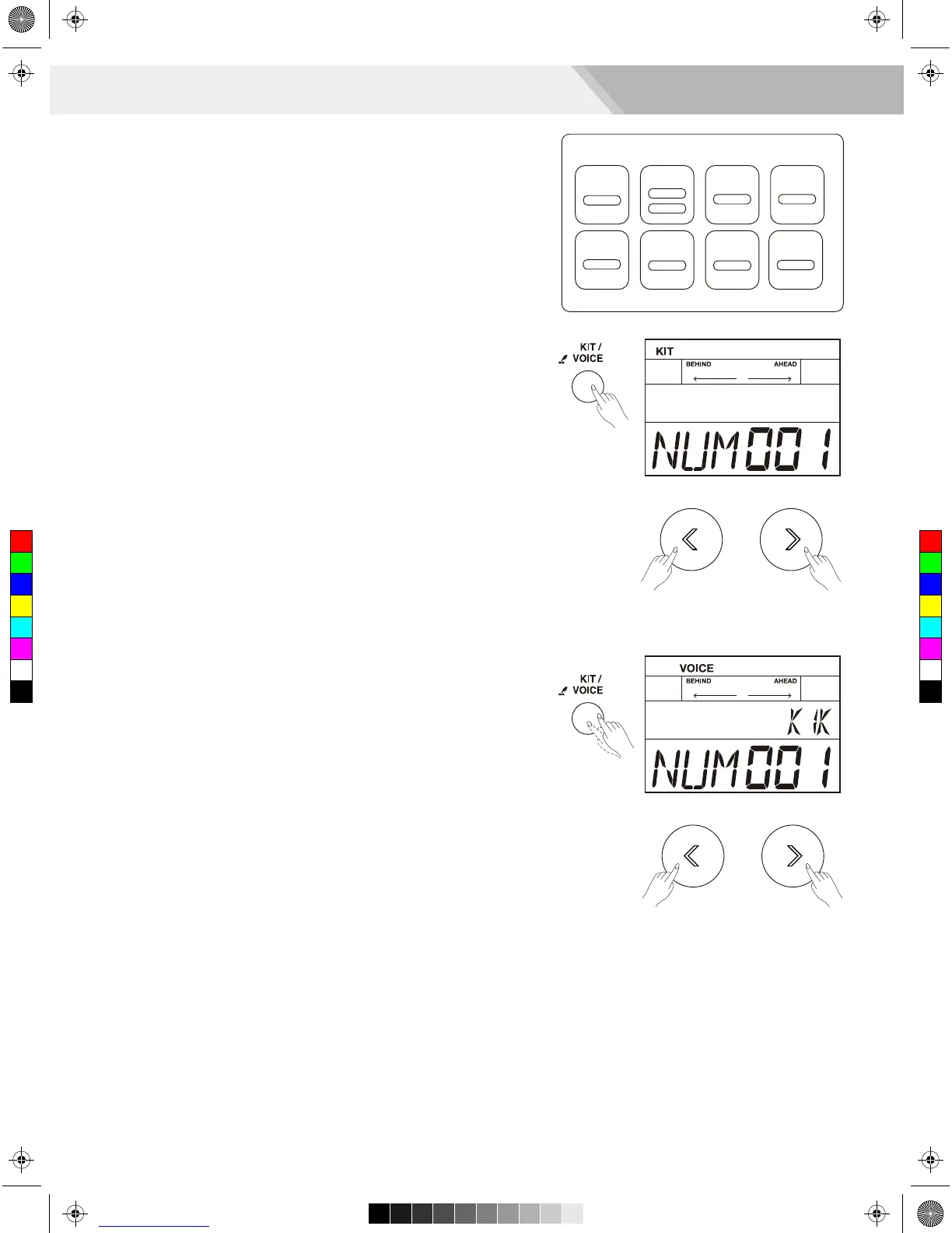 1. Shortly press the [KIT/ VOICE] button, enter the drum kit menu.