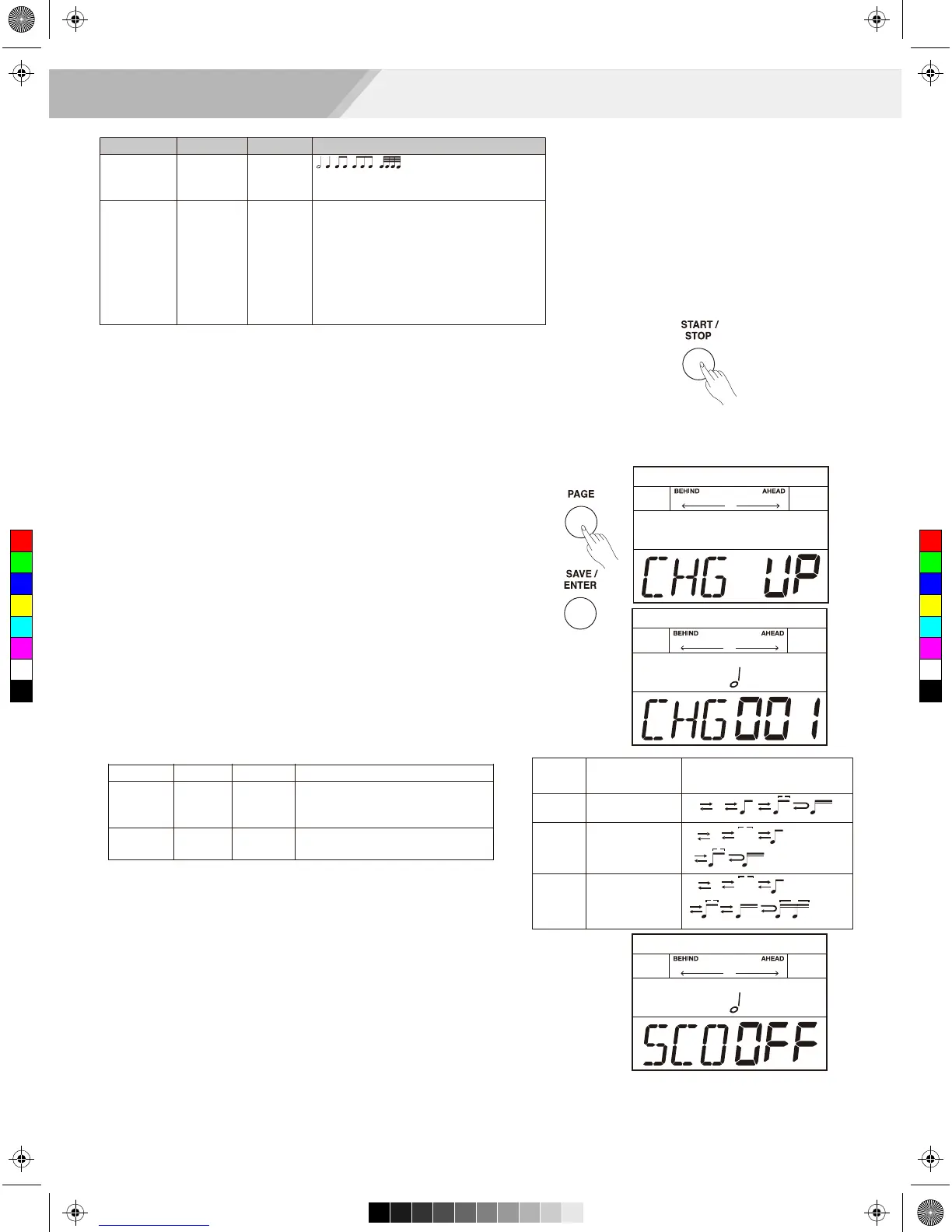 4. Use the [PAGE] button to switch to score editing, press the [<]/[>]