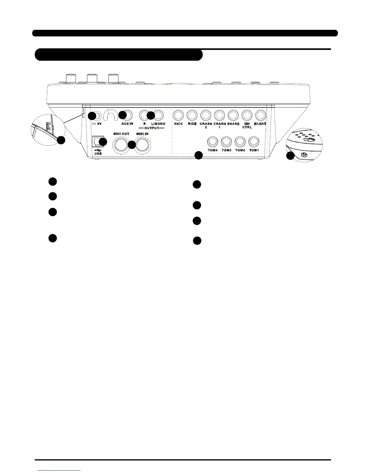 InputconnectionsforKick,Snare,Tom,CymbalpadsandHi-Hat