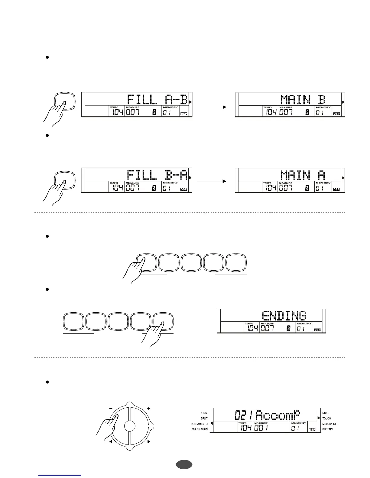 Press[INTRO/ENDING]buttonwhenthestyleisplaying,thestylewillstopaftertheENDINGover.