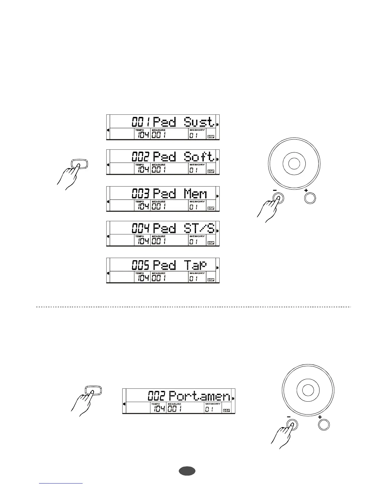TheLCDdisplaysthetypeofpedal.Use[+/YES]/[-/NO]buttonorthedialtochangetheassignedpedal