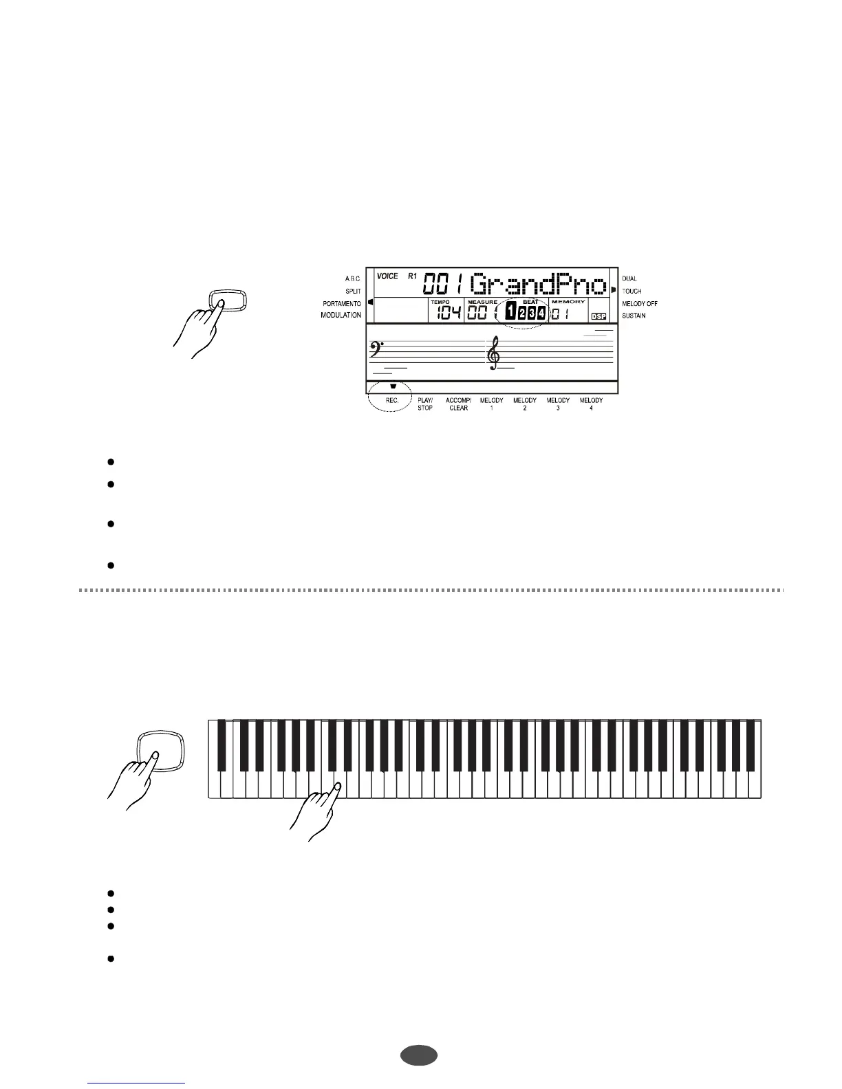 Aftersettingallthesettingsinrecordwaitingstatusandchoosingthemelodytrack,playthekeyboard