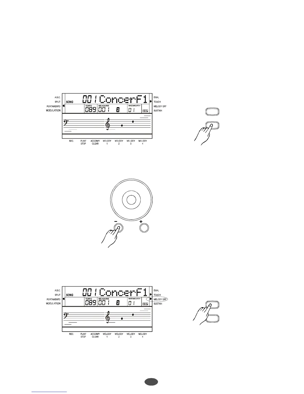 Insongmode,press[MELODYOFF]buttoncanmutethemelodytrack.Themelodyoffflaglightson