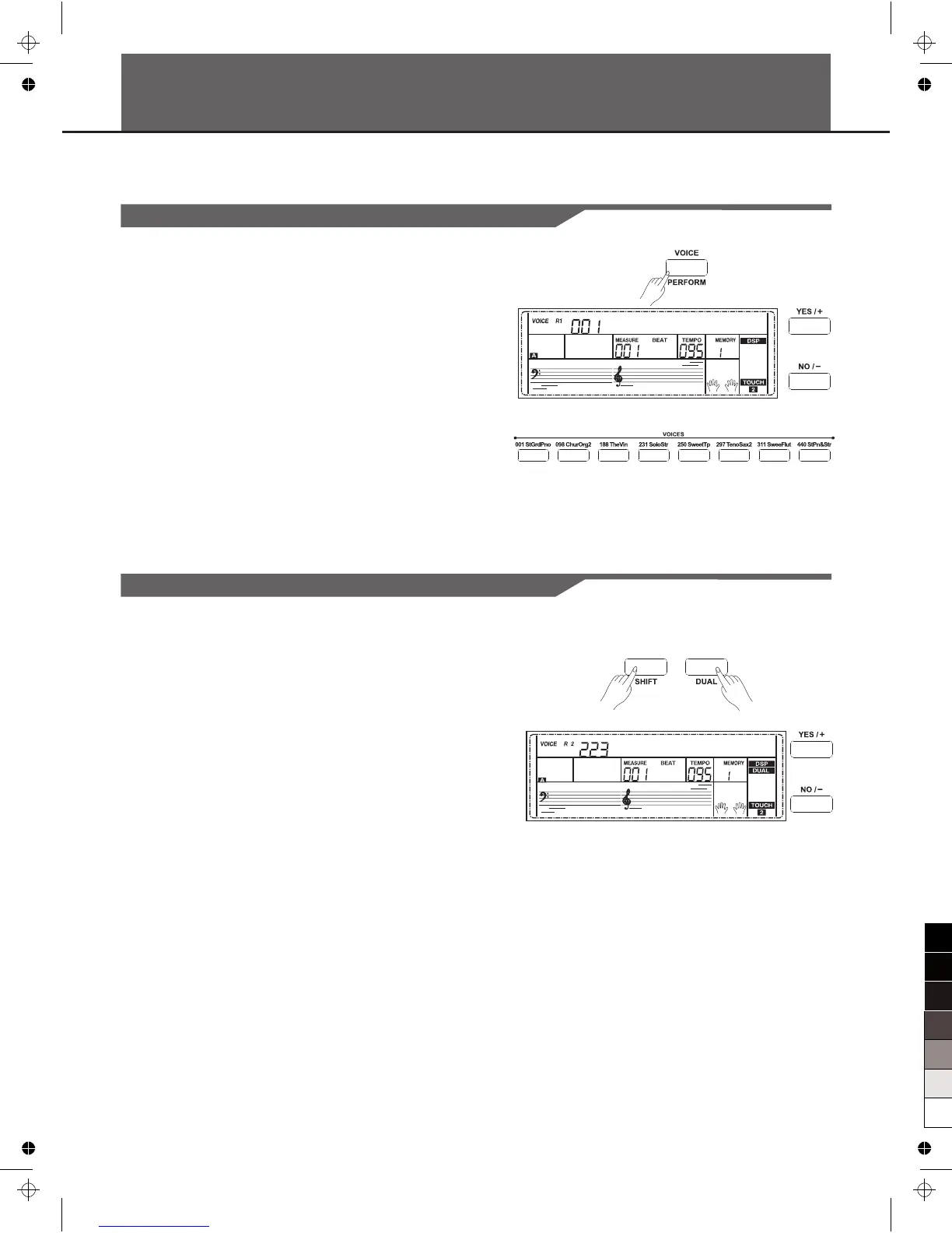 When the DUAL and LOWER function is on, you can press [VOICE]