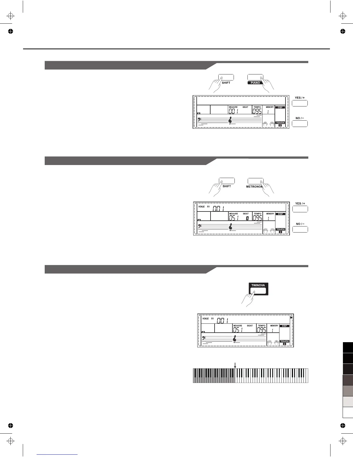 dial, the [+/YES], [-/NO] button to set octave value of twinova. The