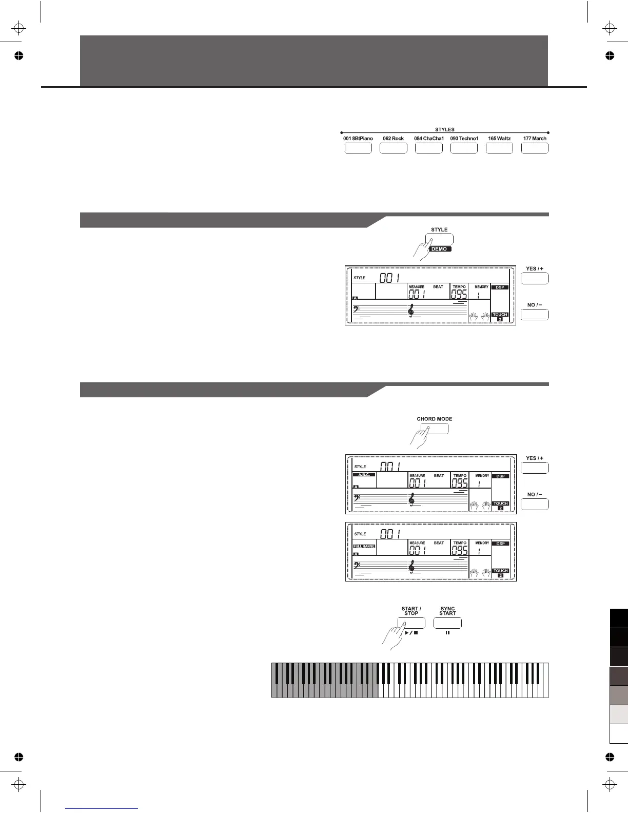 style mode. LCD displays the name and number of the current style.