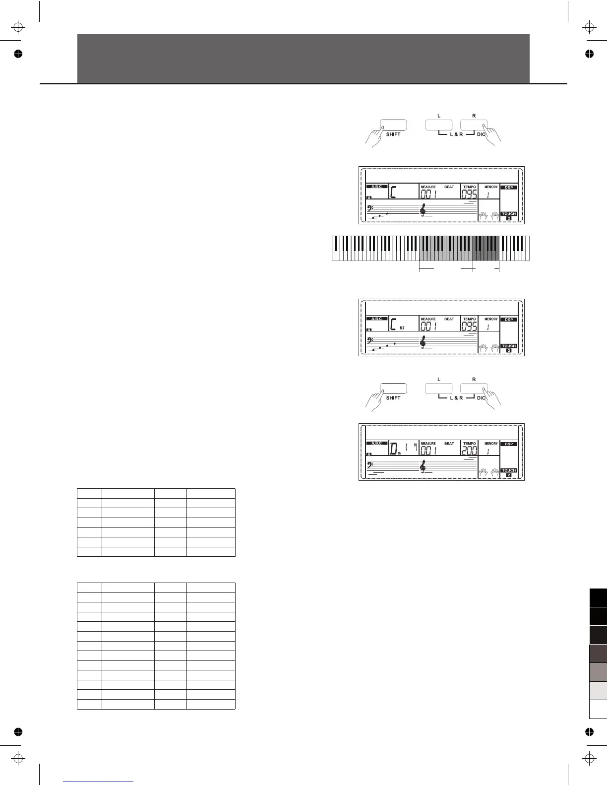 In DICT 1 mode, the keys C4~B5 are used to assign the Chord Type,