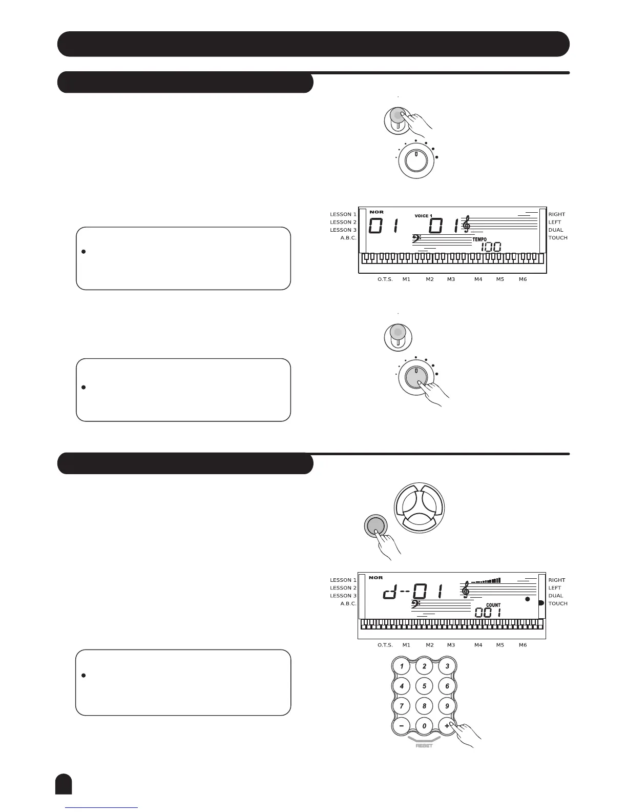 Select a demo song with [+], [-] or number buttons