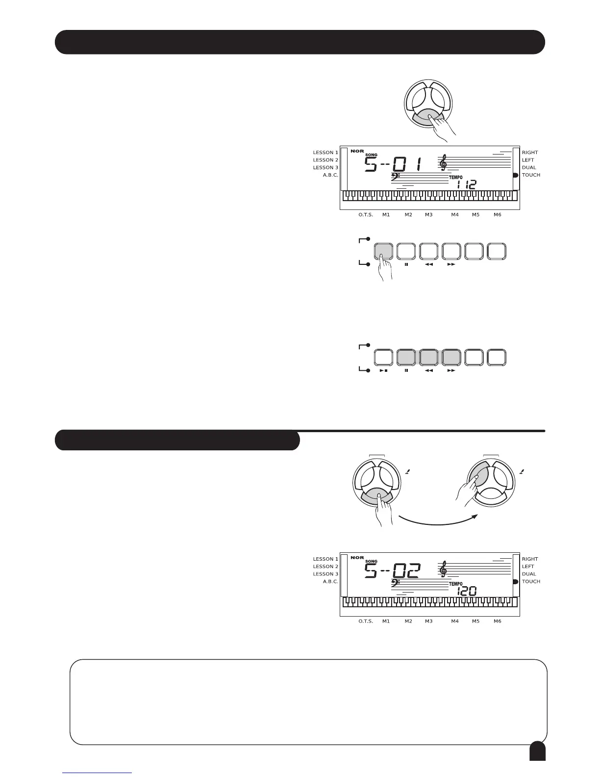 position, the numbered musical notation displayed on the LCD shows the last note played by the RIGHT track,