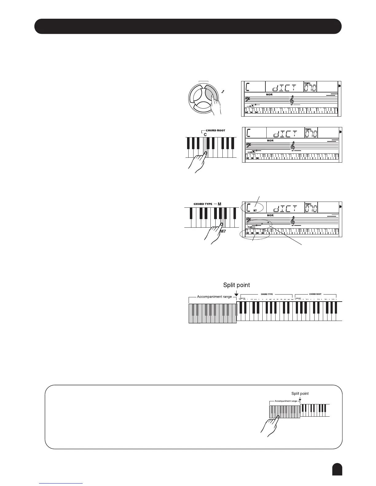 Press [CHORD DICT./R] button to enter the DICT mode.