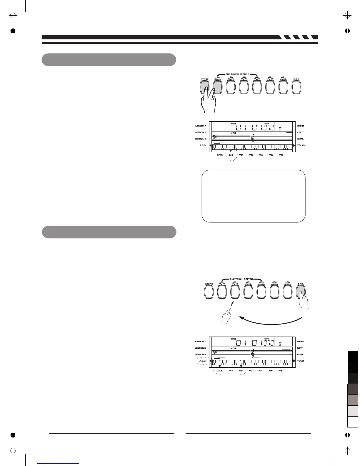 STYLE NUMBER, TEMPO, A.B.C ON/OFF, NORMAL/