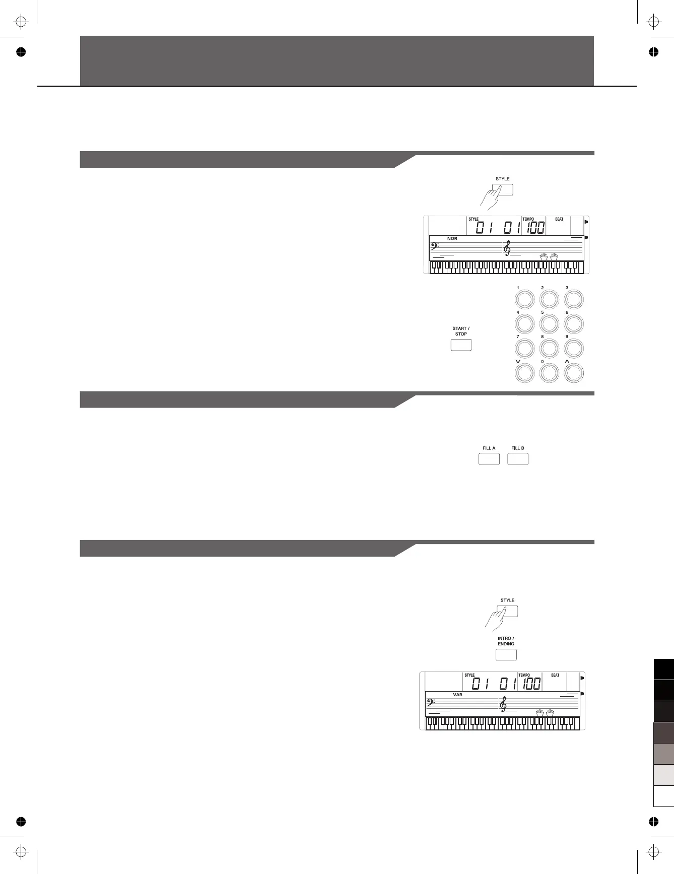 Press FILL-IN A/B when style stop, it will change to the normal section.