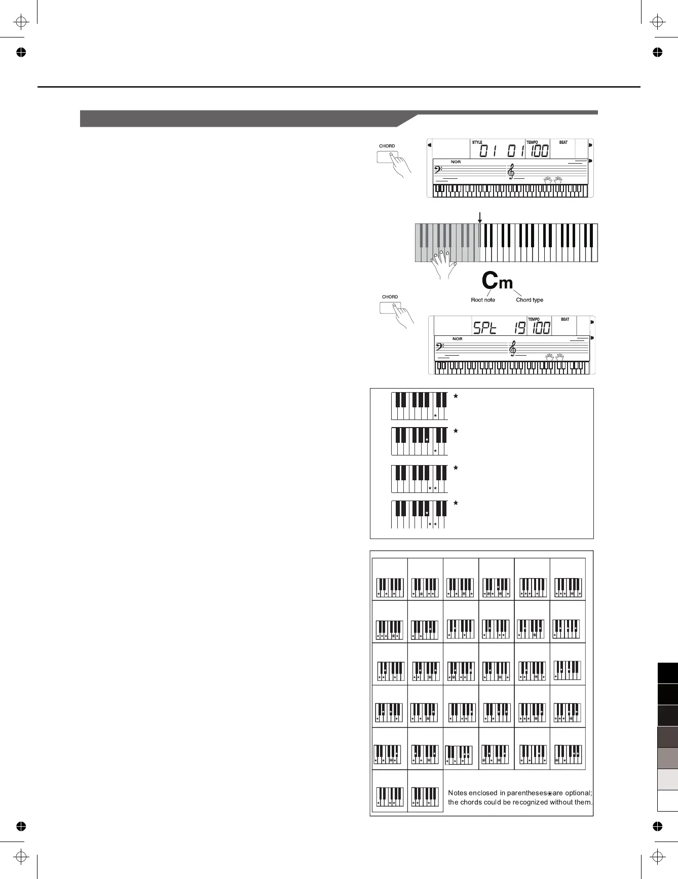 1. When the [CHORD] is switched on, the chords you played in the