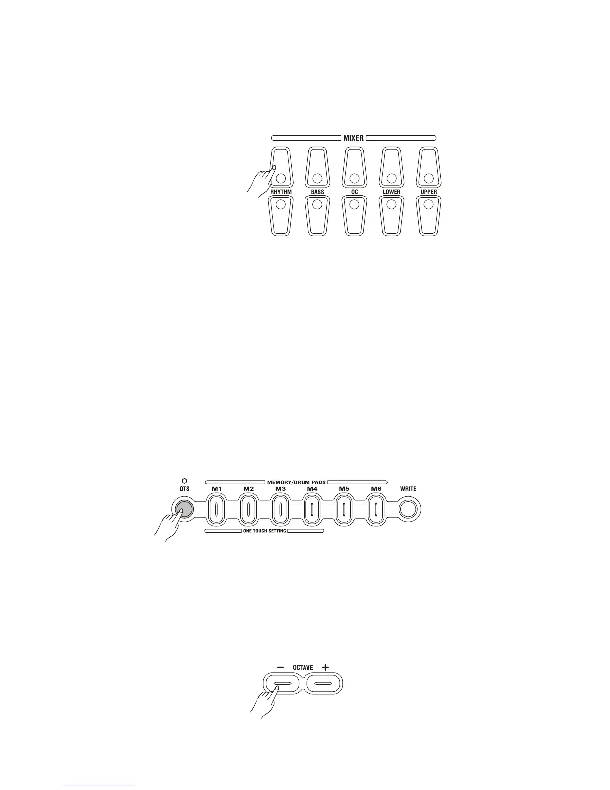 LOWER, VOICE, UPPER VOICE. You can use the buttons at the MIXER section to control the