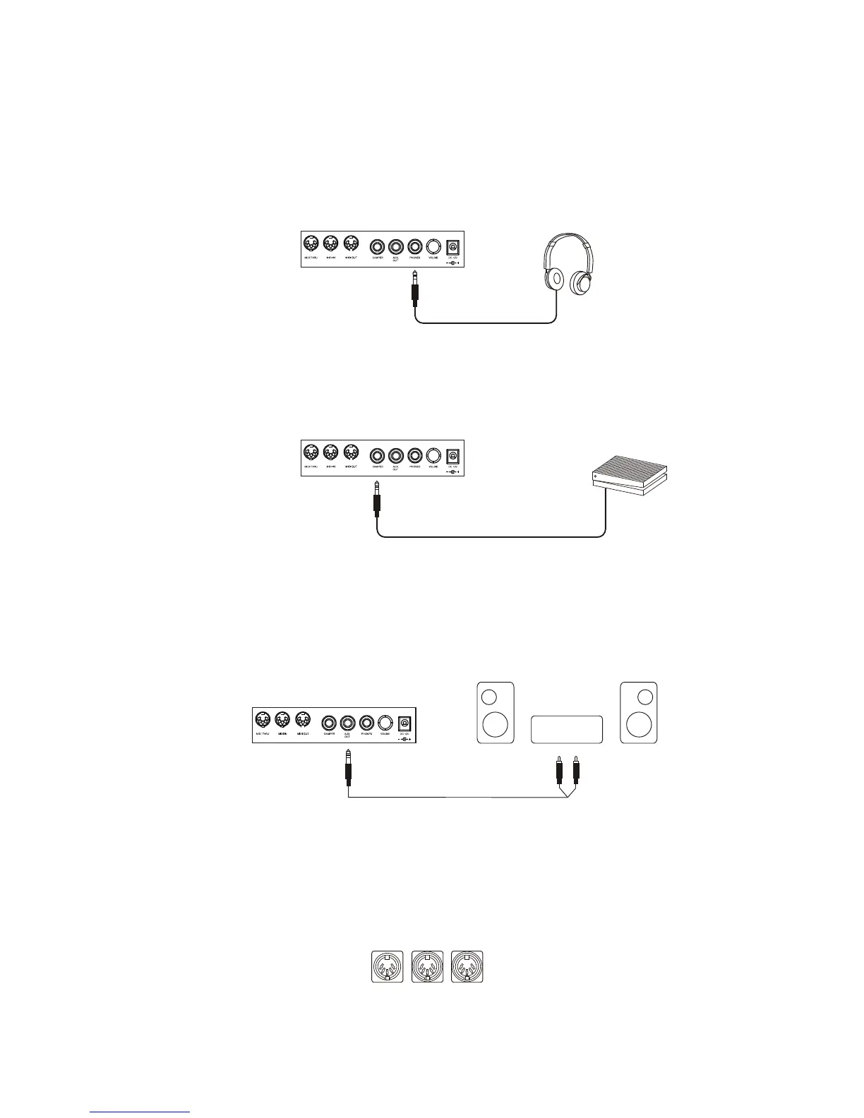 The MIDI IN, OUT, THRU jacks
