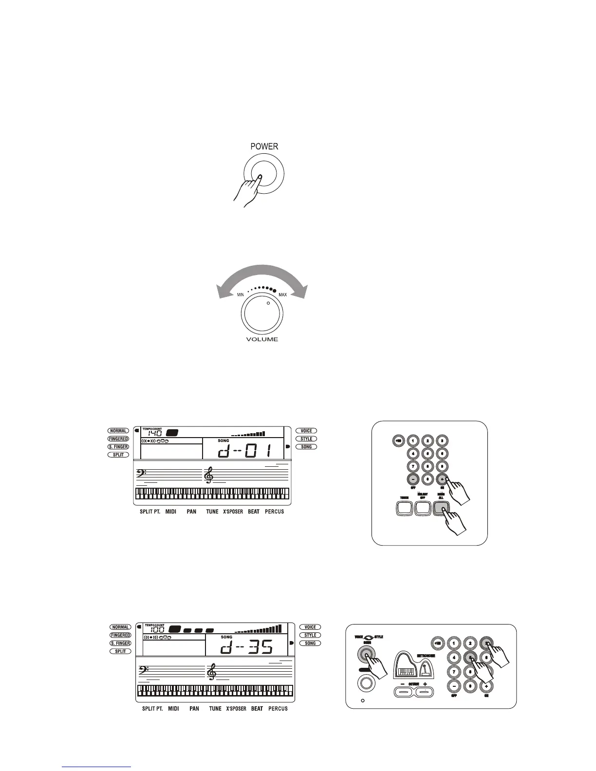 2. Use the NUMBER buttons to input the two-digit number of a demo song.