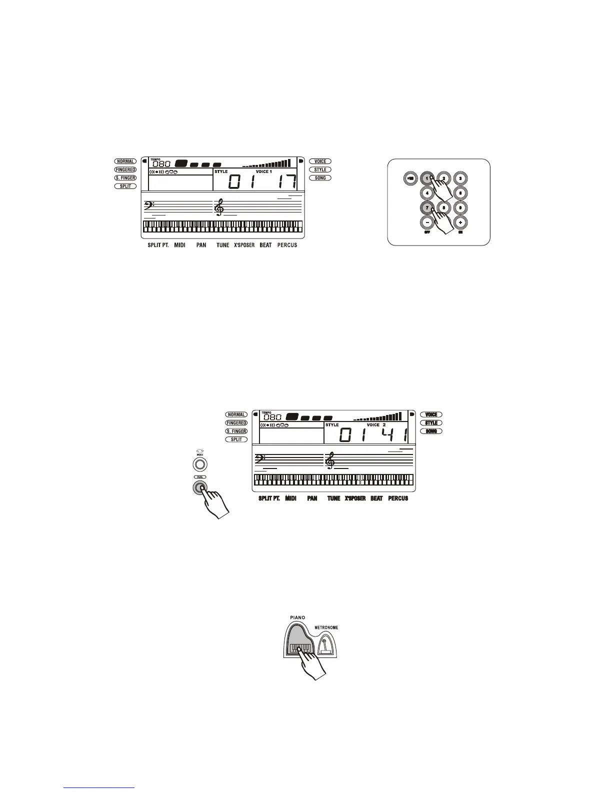 You can select the piano voices immediately by pressing the [PIANO] button. Press the [PIANO]