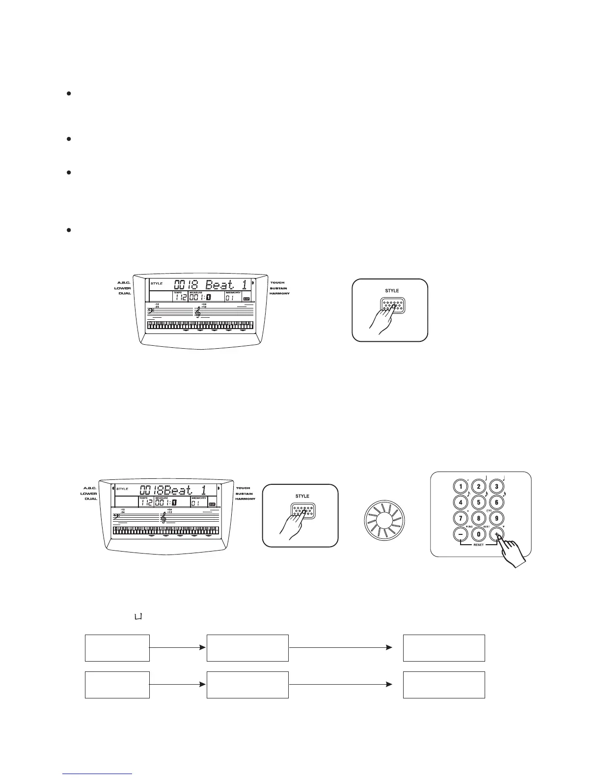 button. A word "STYLE" appears on the display and you can select another style