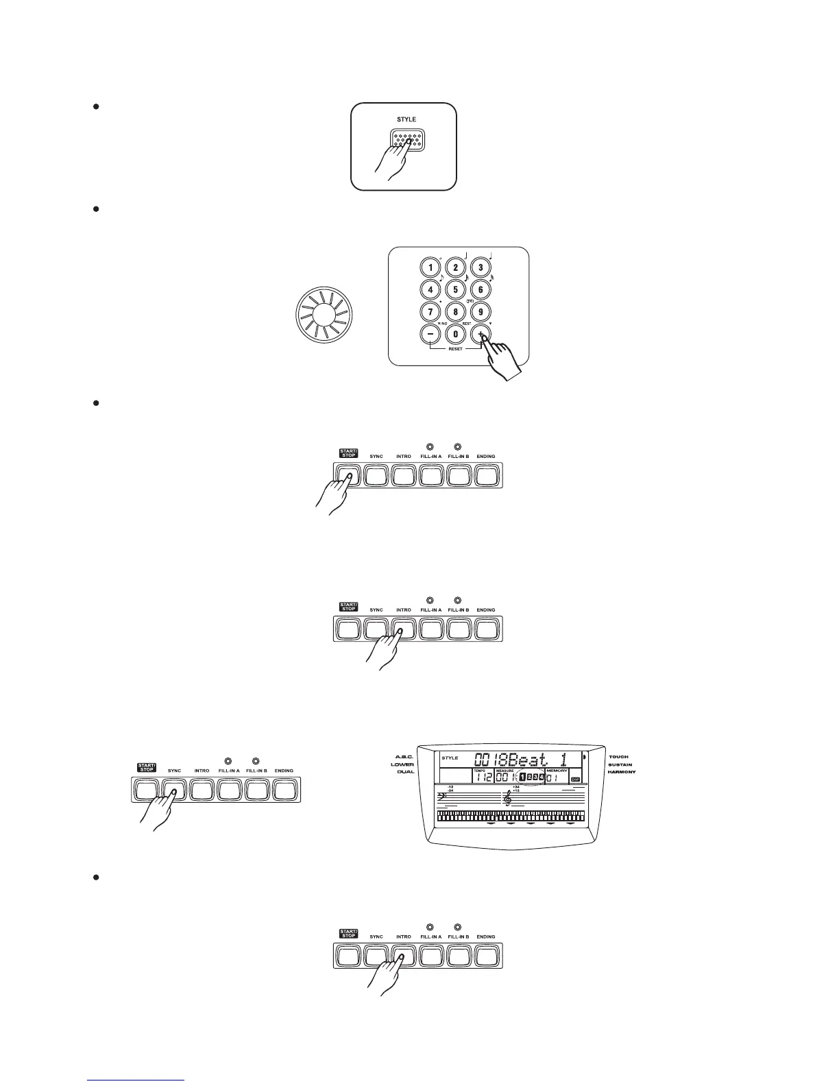 To start the main section and accompaniment ,play any keys on the keyboard.