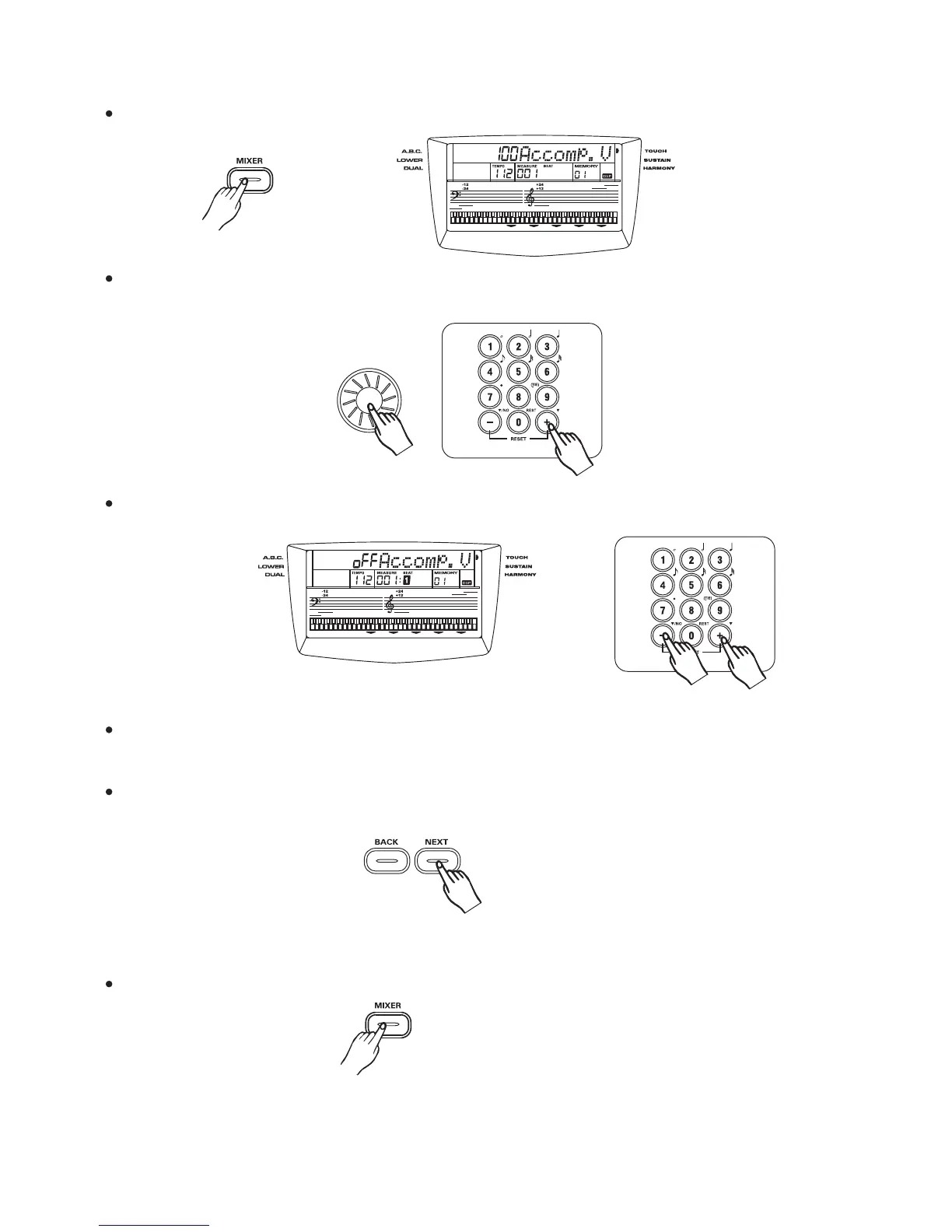 Press the button. LCD display "100 ACCOMP".[MIXER]