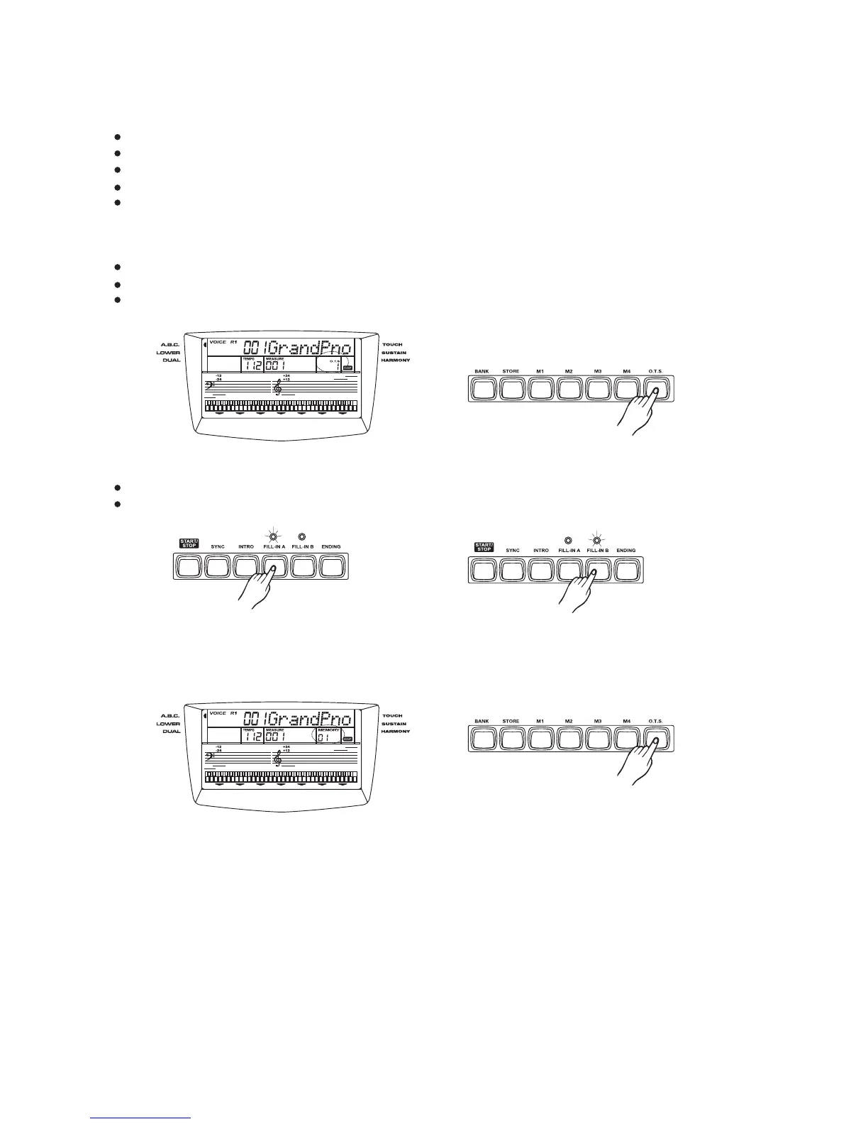 When the style is playing,press to turn on the O.T.S mode.It will inset a "Fill in"[O.T.S]