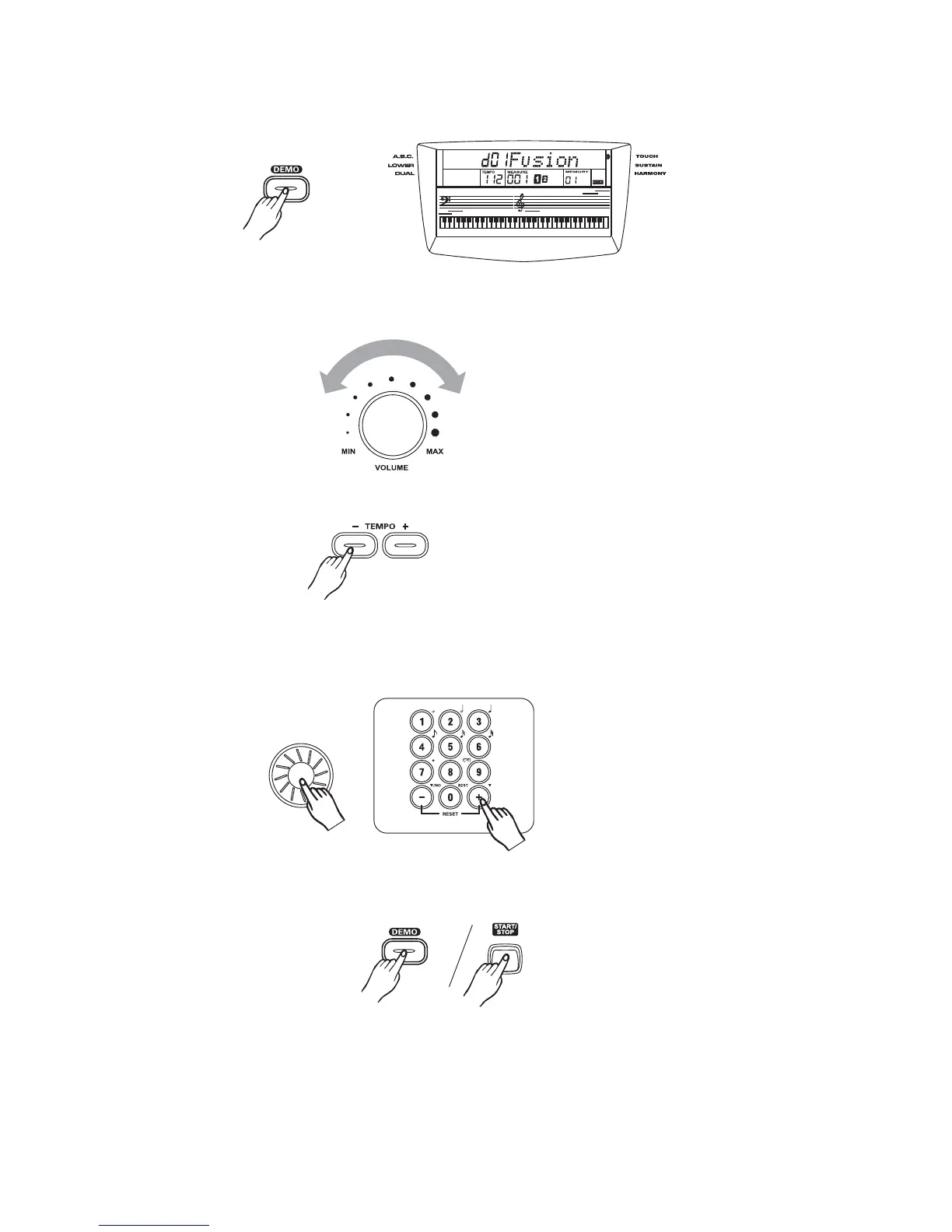 Press the or button to adjust the tempo of the DEMO.[TEMPO+] [TEMPO-]