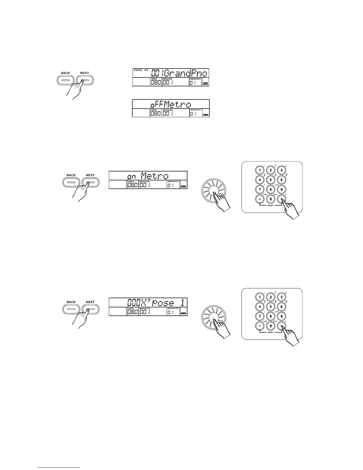 Press the button to turn Metro ON/OFF with the , , .[NEXT] dial [+/YES] [-/NO]