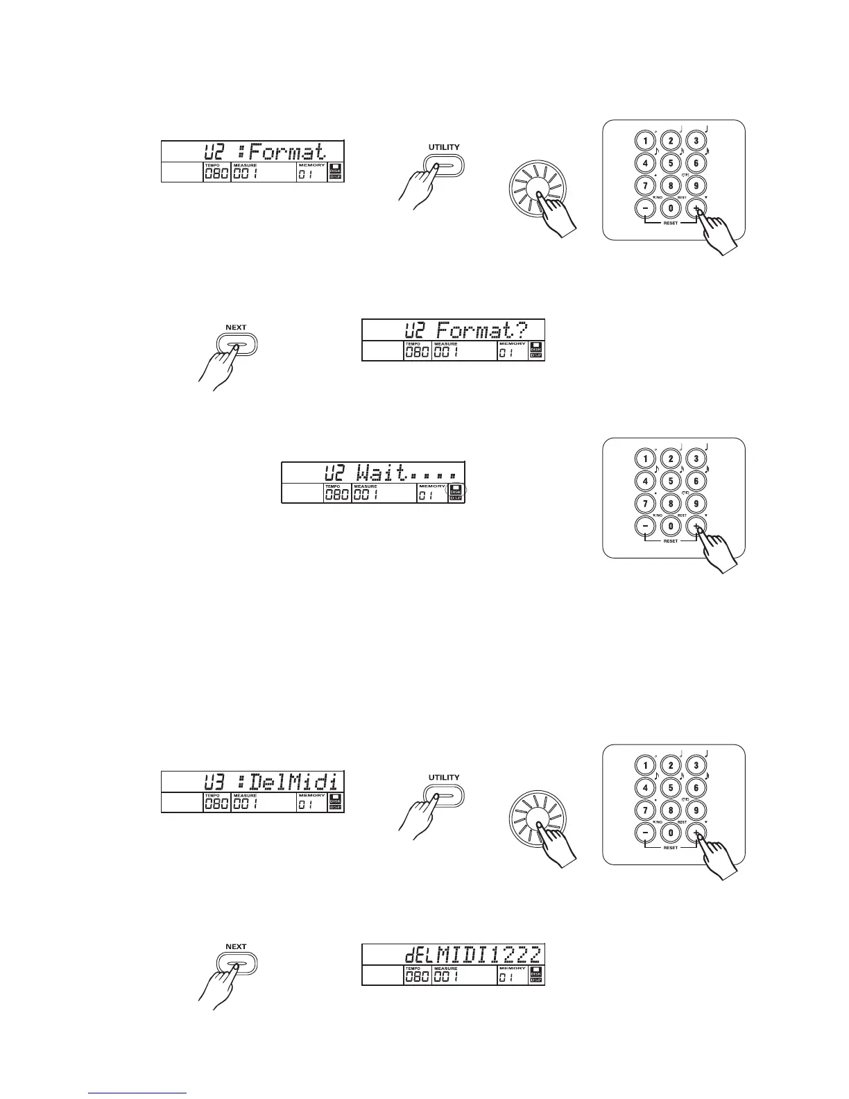 Press button and then press button or rotate data dial,LCD will display: U2:Format..[UTILITY] [+]