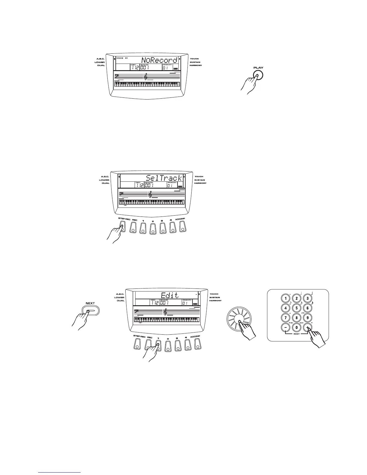 If there are recorded datum in the selected track, the LCD will display "EDIT" for continuing