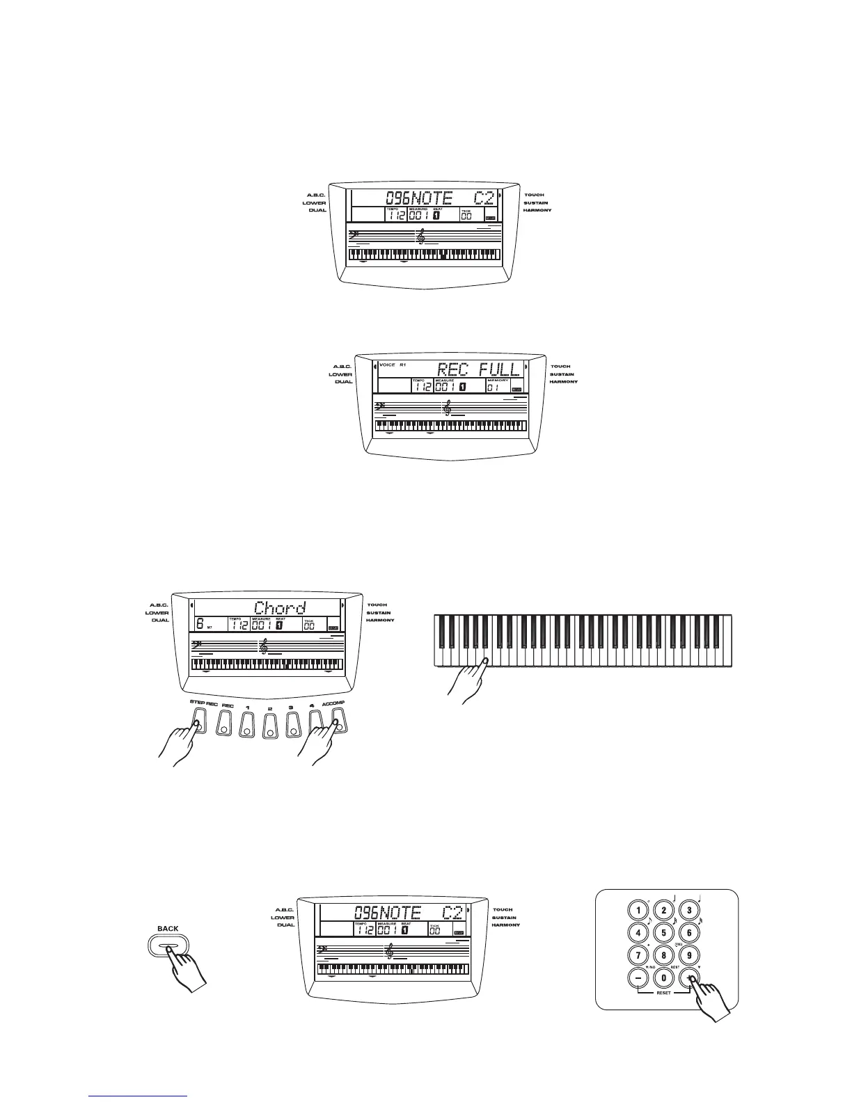 If the record memory is full, the LCD will display :"REC FULL" and it will exit step record mode