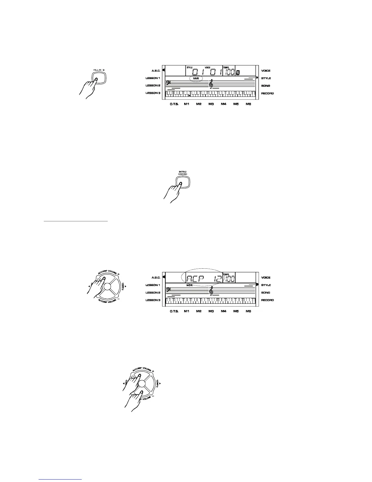 Pressboth[ACCOMP.VOLUME+]and[ACCOMP.VOLUME-]atthesametimetorevert