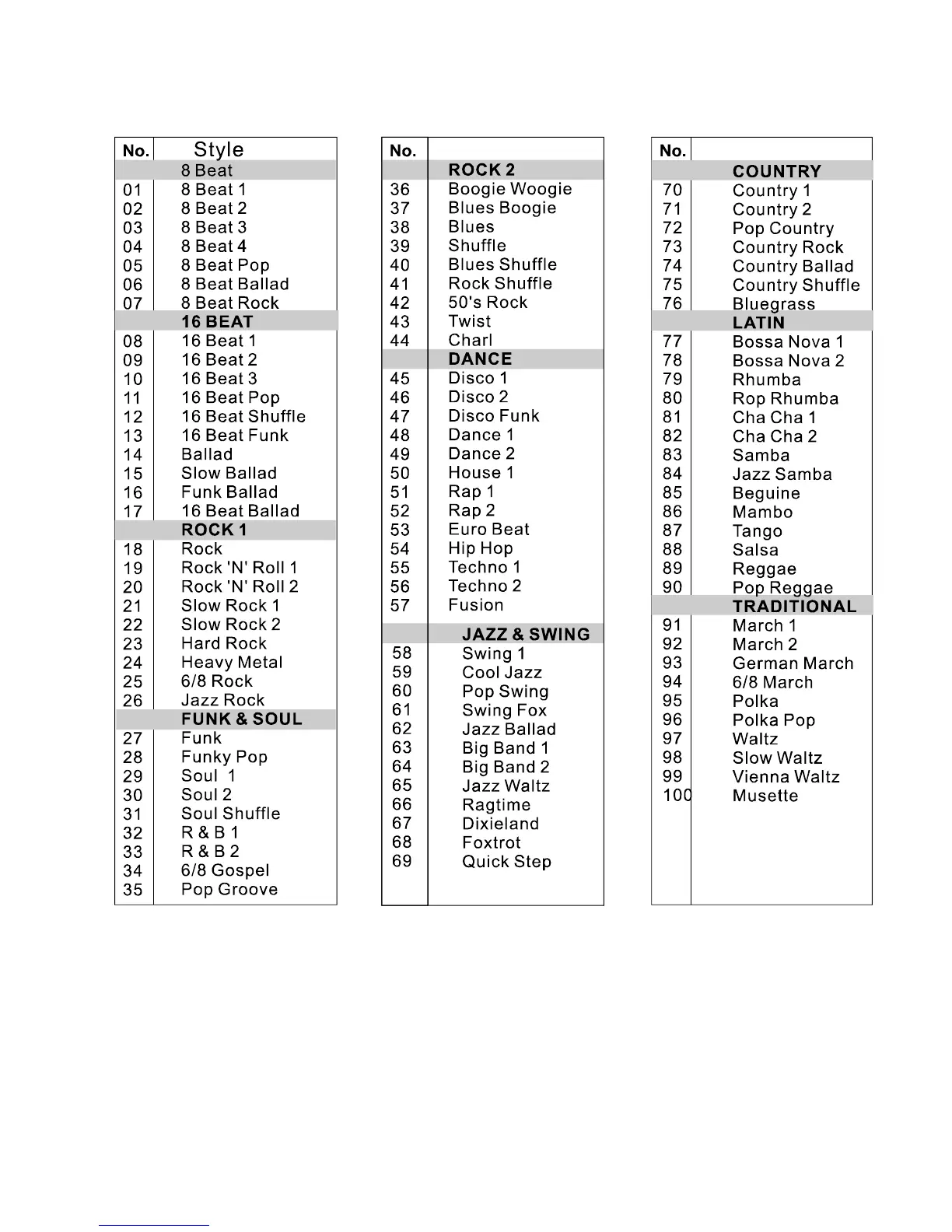 Medeli MC70 - Appendix 2-Style List
