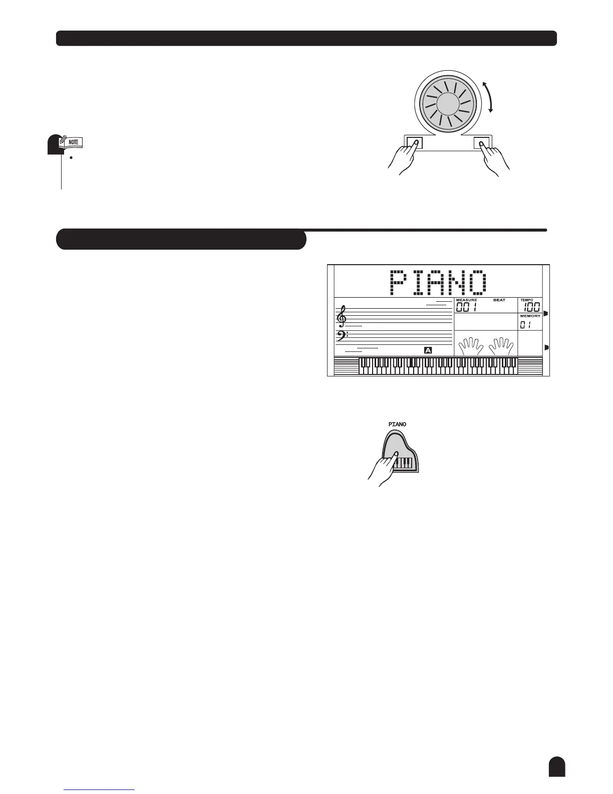 button, or dial at the PIANO mode. Press the