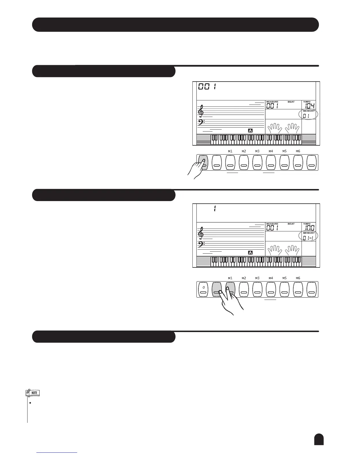 Press [BANK] button, the LCD displays 00x Mem Bank