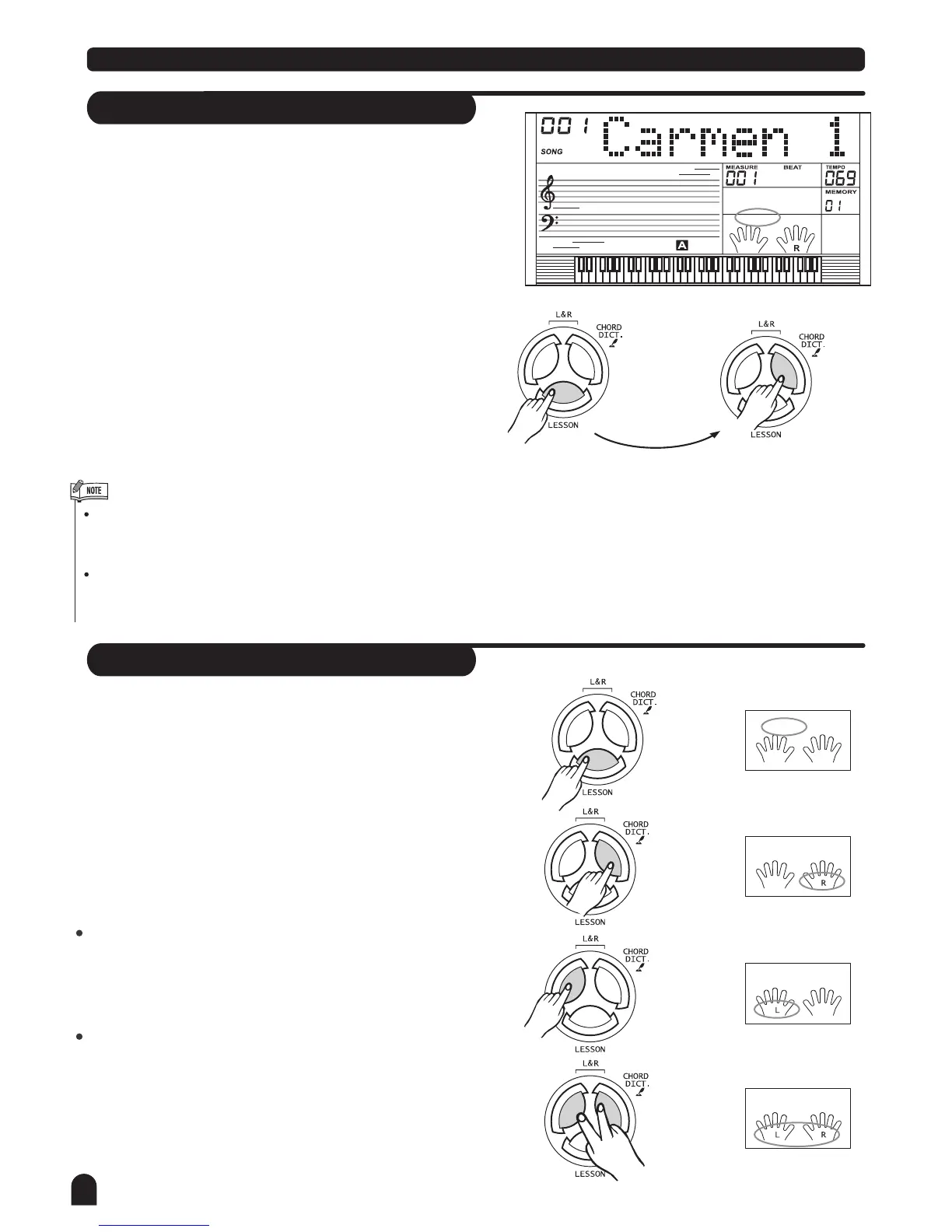 Press [LESSON] button to enter the lesson mode, the