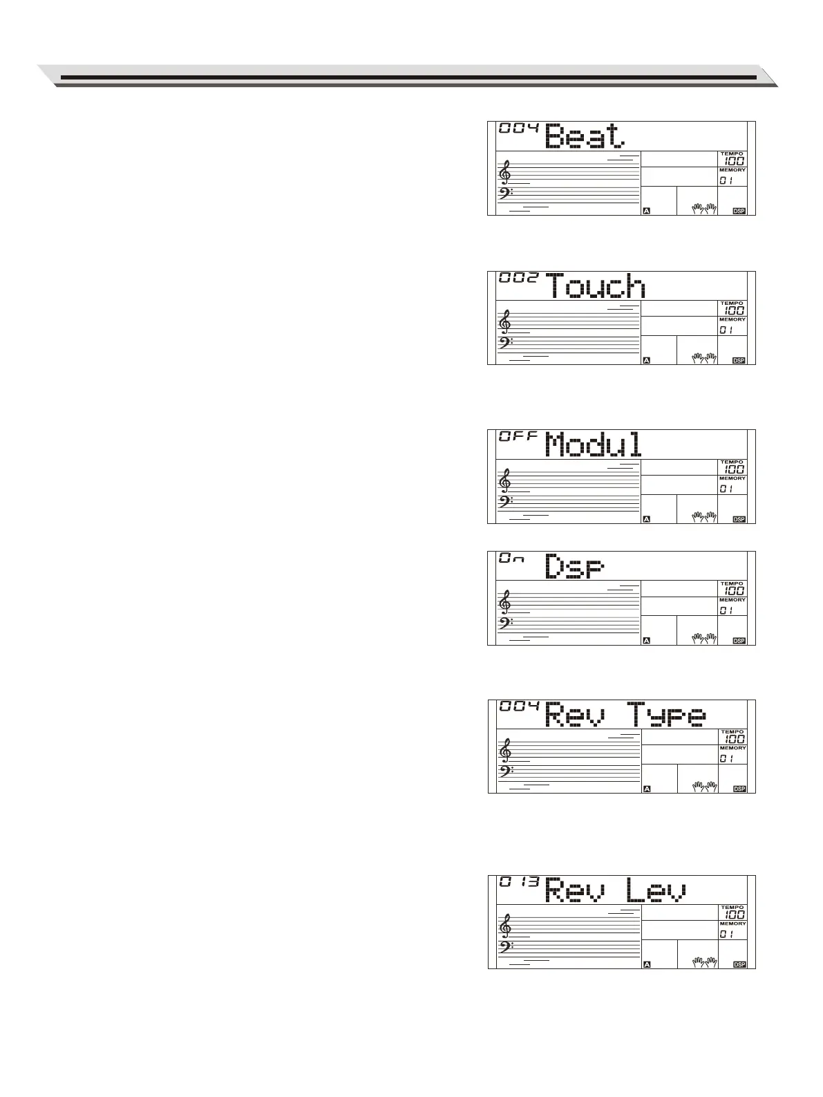 Repeatedly press the [FUNCTION] button to select the DSP menu. The