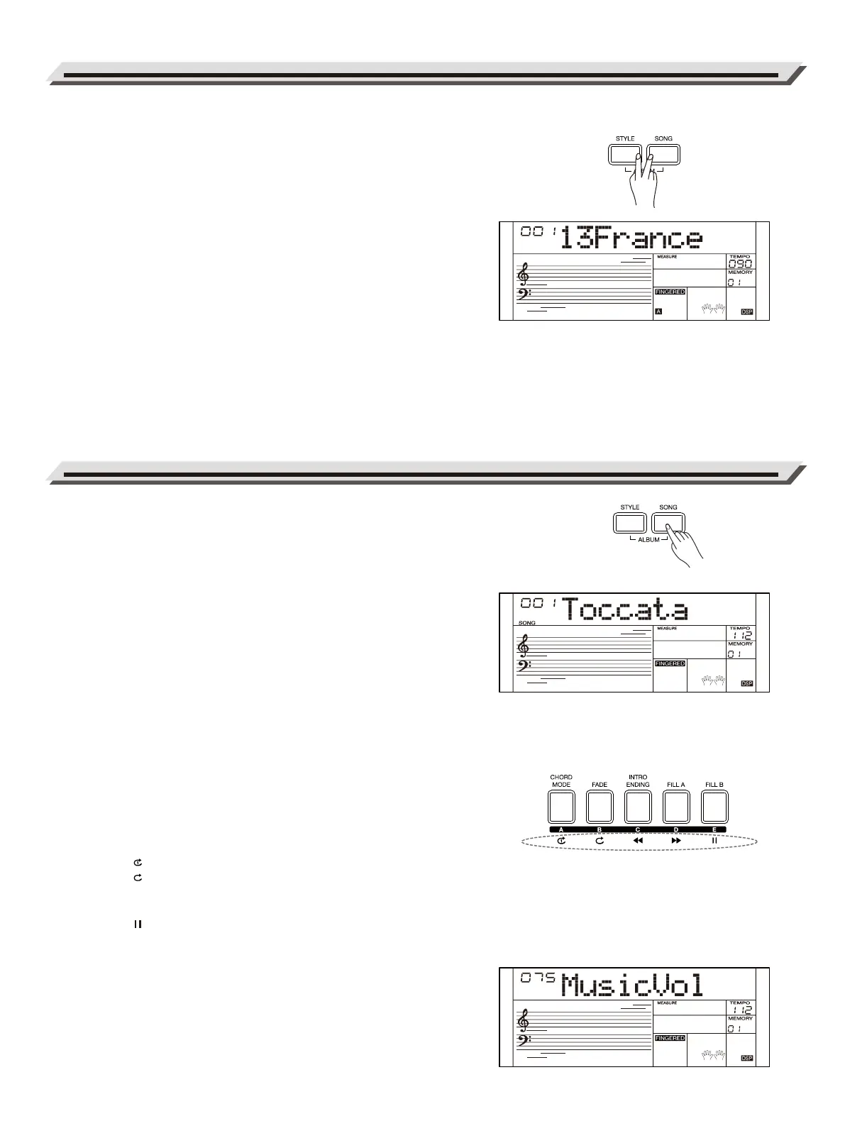 When playback is stopped, press the [STYLE] / [RECORD] buttons
