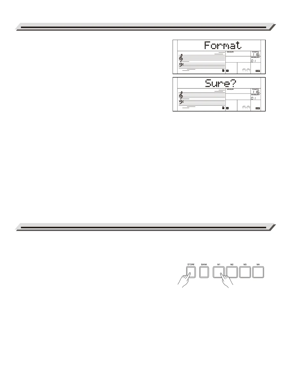 Note: Hold down both the [STORE] and [M1] buttons, then turn on