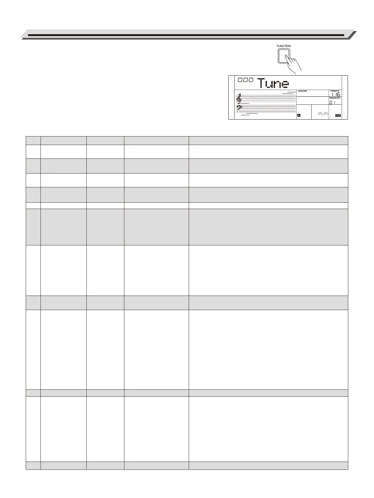 1. Press the [FUNCTION] button to enter the function menu. The LCD