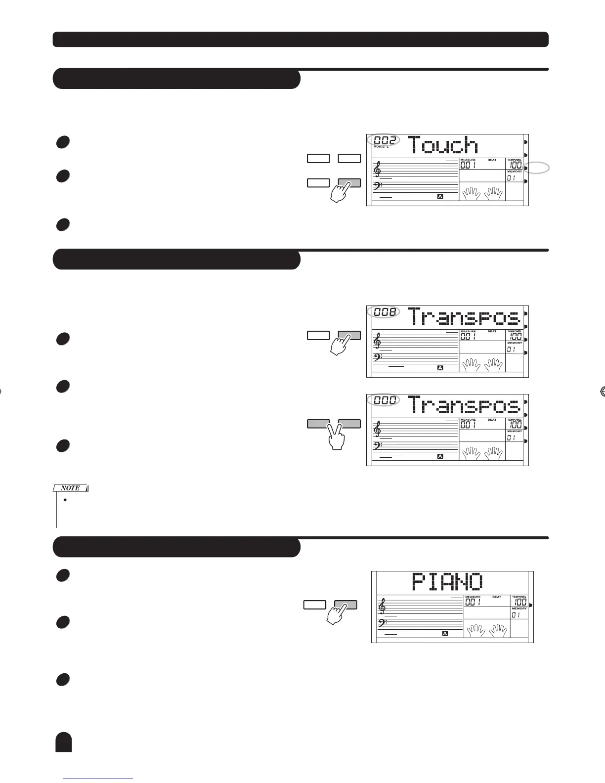 the first time to enter the Transpose setting mode, LCD dis-