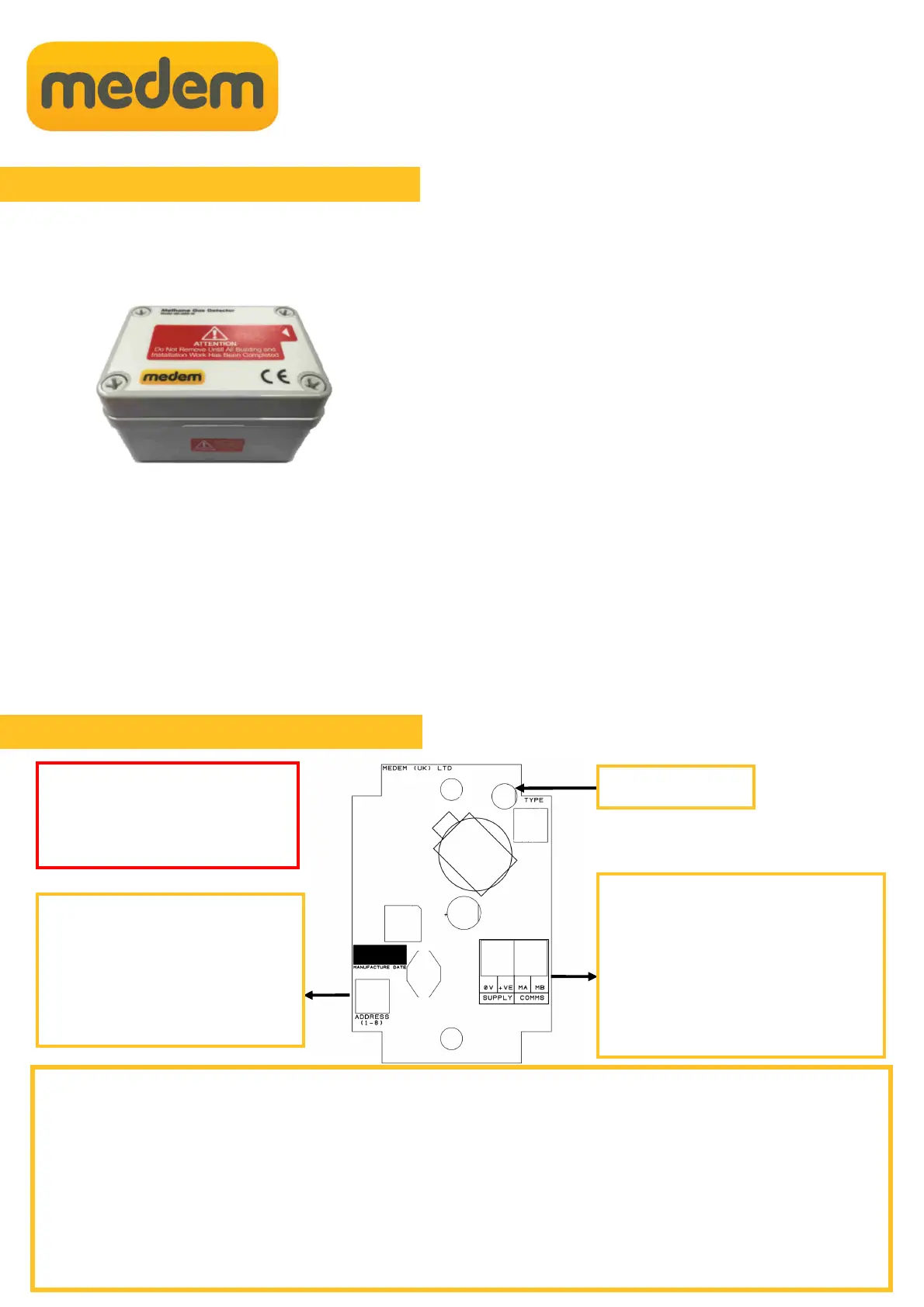 IMPORTANT - Gas Detectors should not be installed until all building, construction or painting work etc.. Is completed, as these